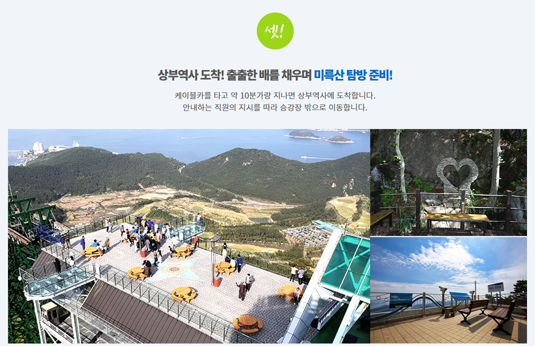 - 출발지: 통영 도남동 → 미륵산 정상 근처 상부역사